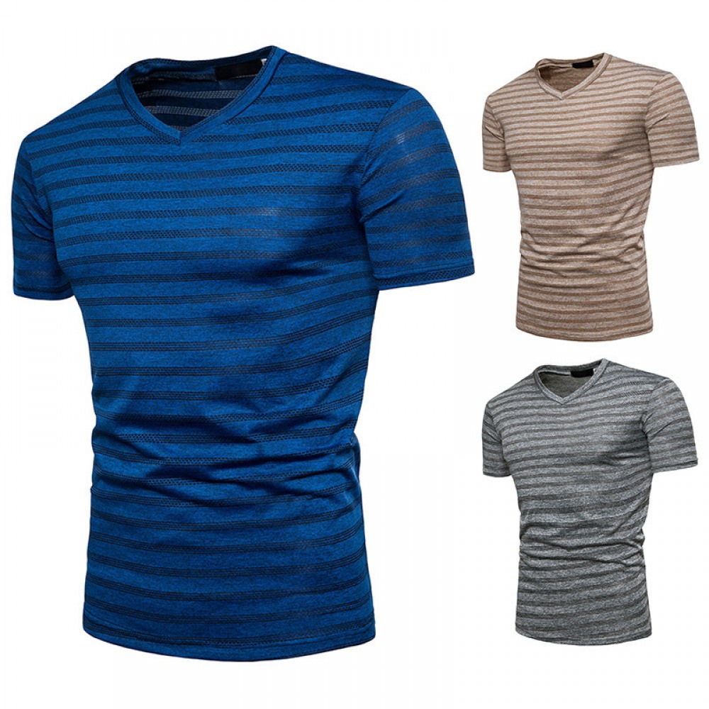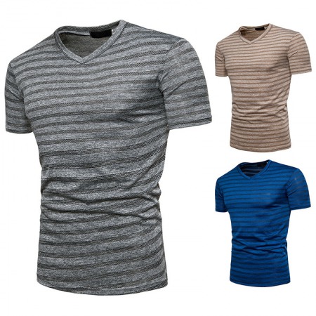 New Men's Fashion Plus Size Striped Short Sleeve T-Shirt