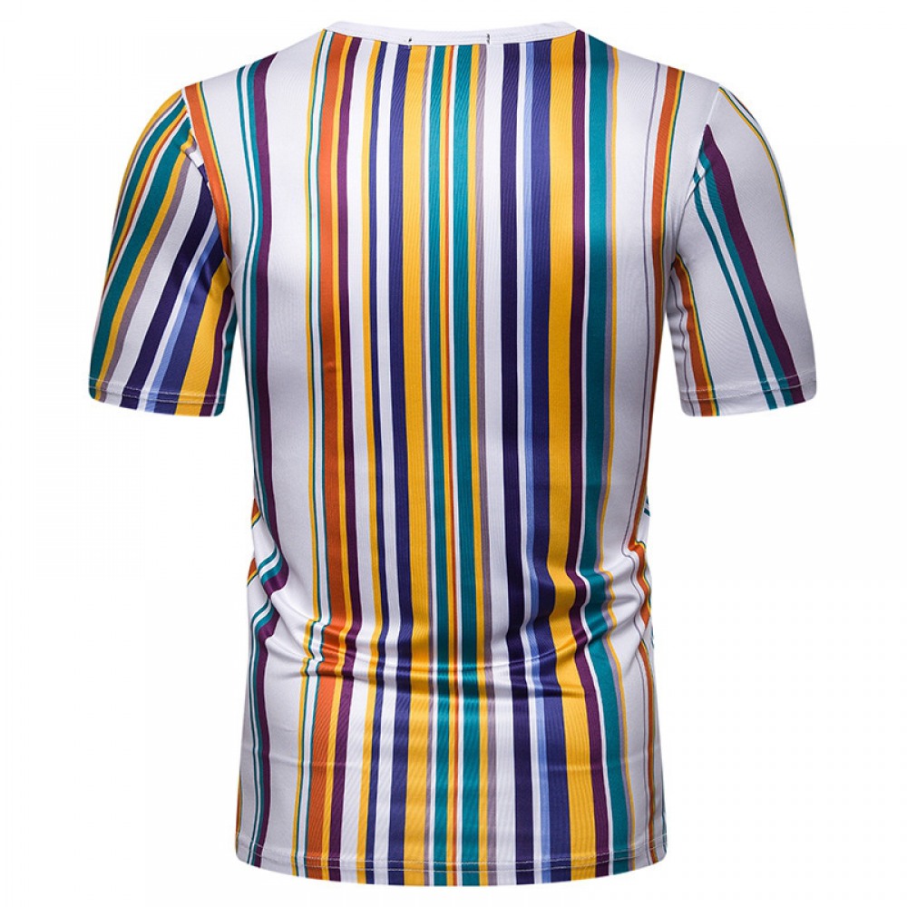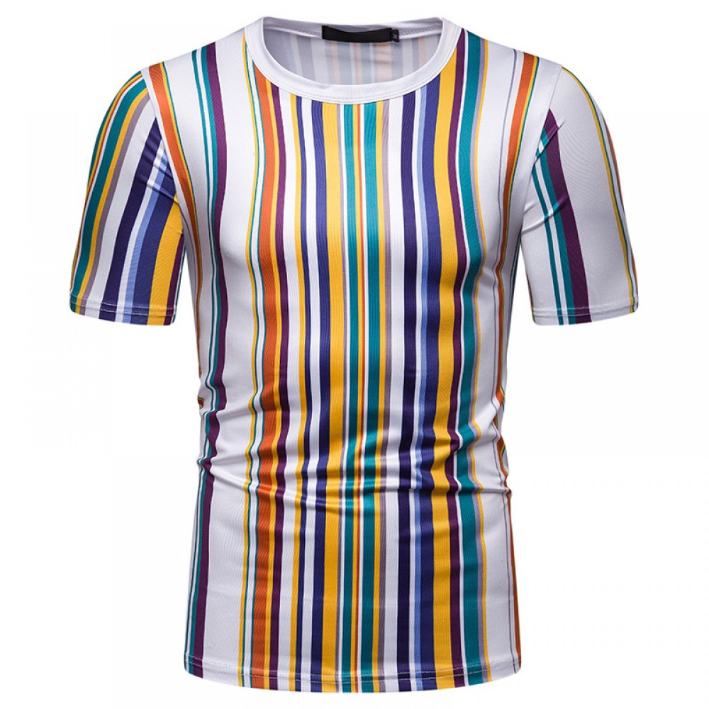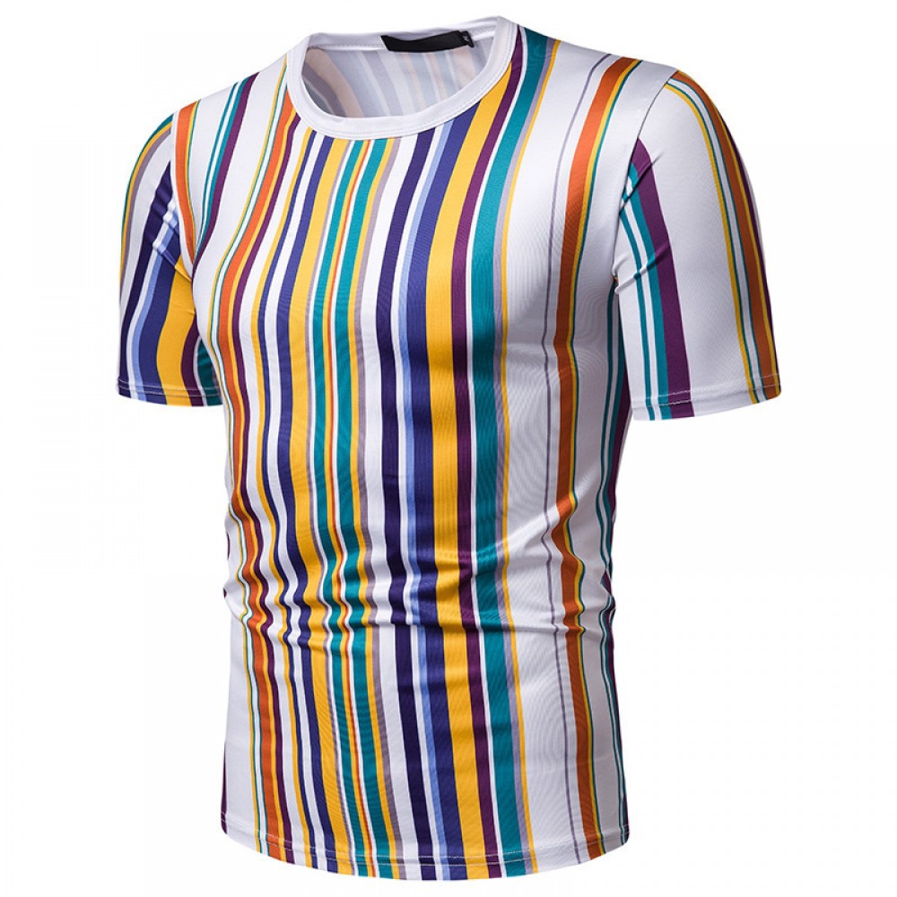 New Summer Men's Short-Sleeved T-Shirt Mens Contrast Striped Slim-Fit T-Shirt