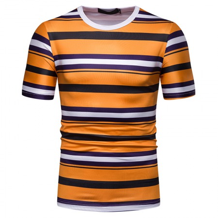 New Summer Men's Short-Sleeved T-Shirt Mens Contrast Striped Slim-Fit T-Shirt