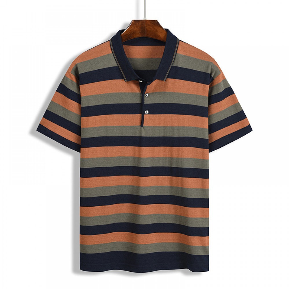 Summer T-Shirt Striped Color Matching Pockets Men's Lapel Short-Sleeved Tops for Men